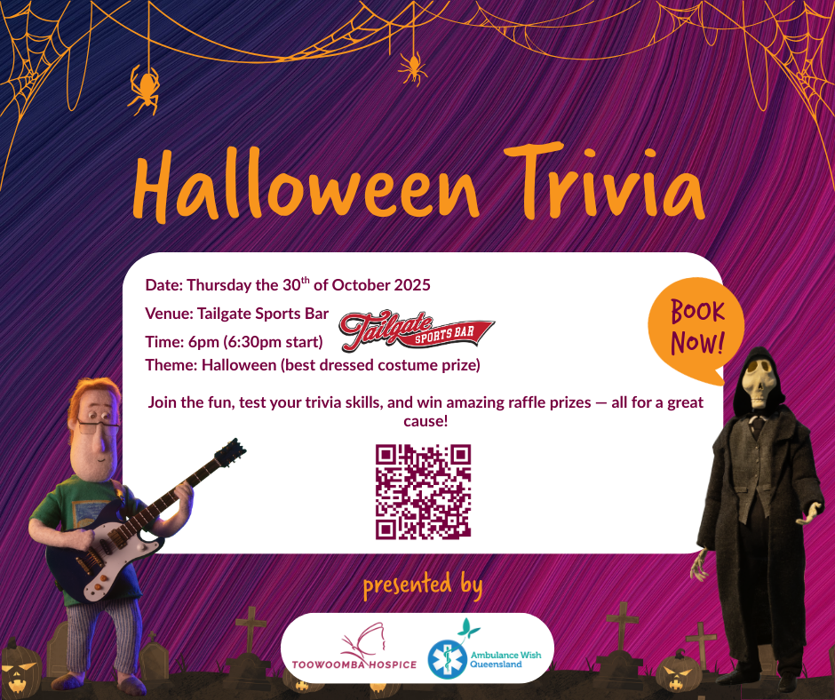 Co-Hosting with Ambulance Wish QLD, you can join us at Tailgate for a fang-tastic night of fright, fun & fundraising! Bring your boo crew (friends & family welcome!) and put your brains to the test - it's going to be a real monster mash-up of questions, laughs and devilishly good fun.